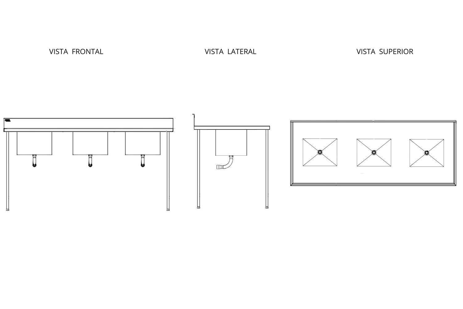 A bancada em aço inox com 3 cubas e pés é um equipamento profissional desenvolvido para oferecer alto desempenho, resistência e máxima higiene em