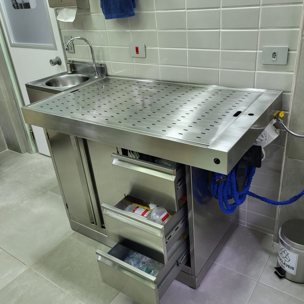 Produtos sob medida em aço inoxidável para hospitais, clínicas, indústrias e centros educacionais.